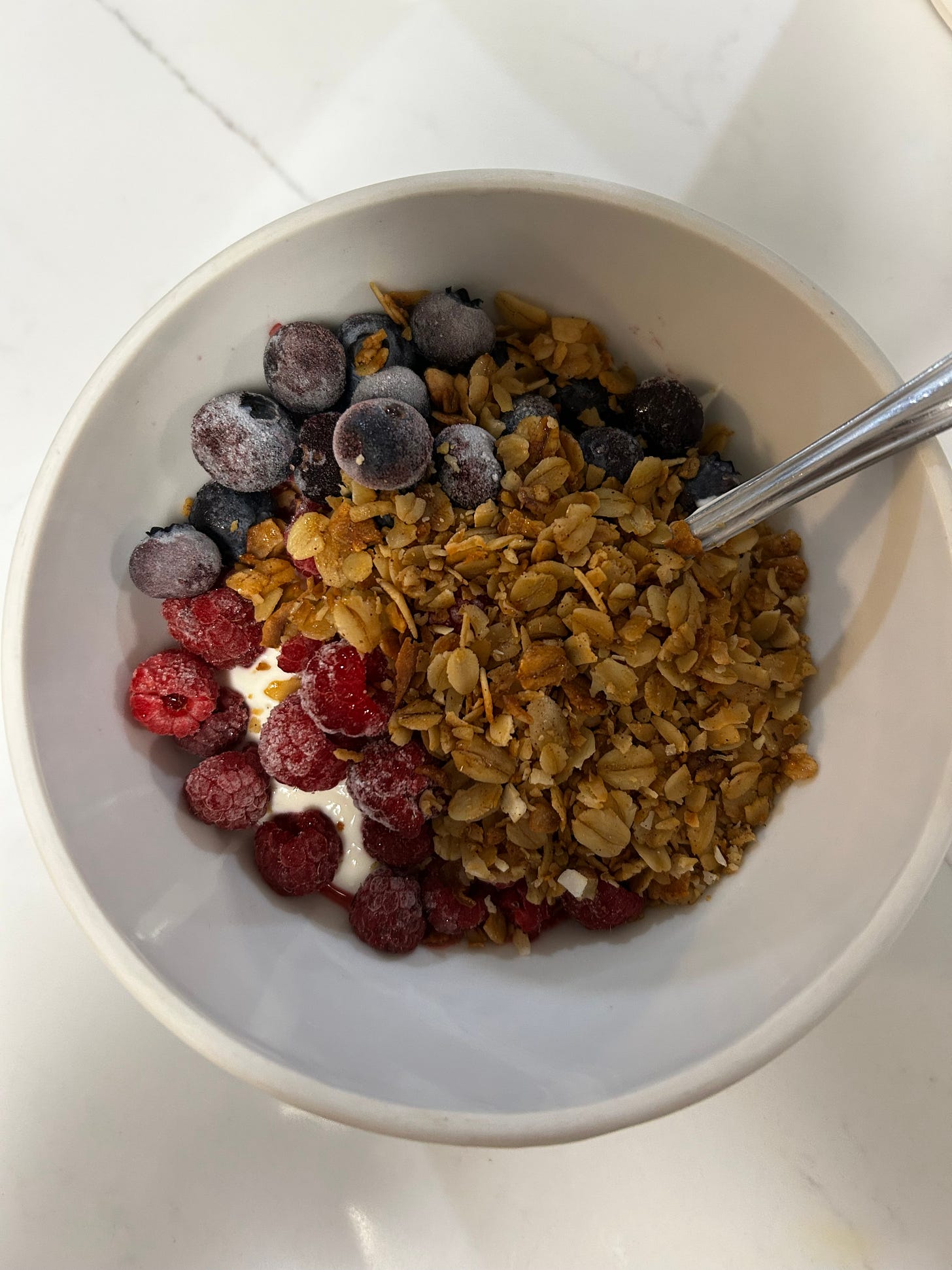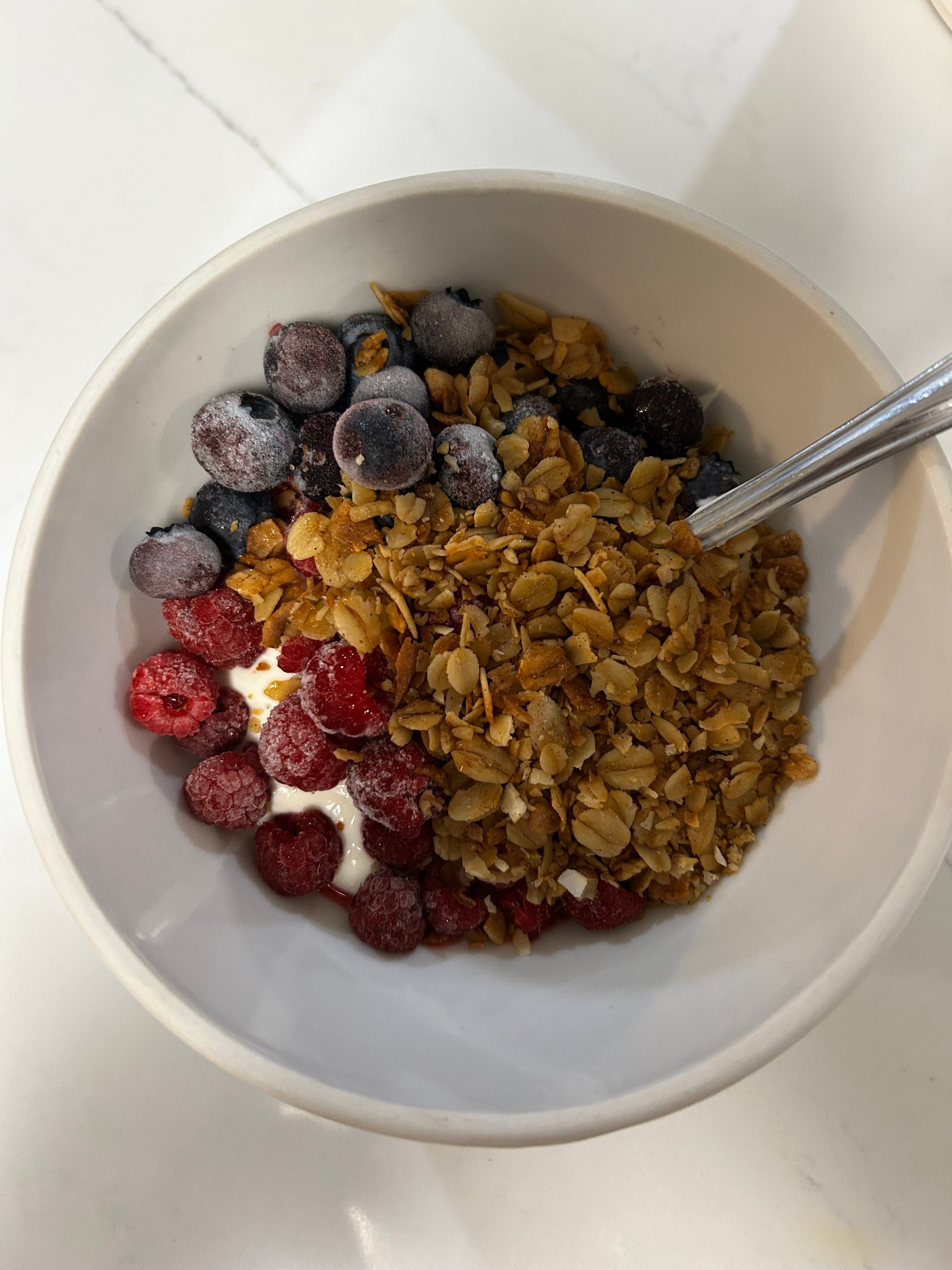 1)Yogurt parfaits. We picked many blueberries and raspberries this summer, thanks to a generous neighbor, a nearby blueberry farm, and good growing conditions. I’ve discovered a rhythm that works for yogurt making, so we can dine on high quality Greek yogurt whenever we please, guilt-free. A little Hope’s Table granola on top makes it a feast fit for a queen.